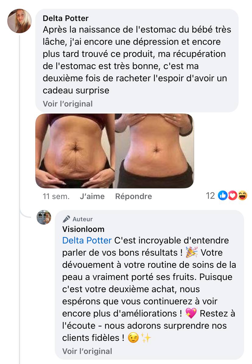 I am 37 years old this year, and after the birth of my second child, my stomach turned into a typical mommy tummy, flabby and protruding. I felt terrible and didn't even want to exercise because it jiggled with every step. I tried cocoa butter and massages for two months, but nothing really changed. My doctor suggested surgery, but I didn't want scars or high costs. My husband ordered this product for me, and it's amazing. It absorbs quickly and leaves no residue, even in the folds. I use it every day, 3-4 times a day, and by the fifth day, I felt my skin tightening, with a feeling of freshness and firmness. After two weeks, I could see daily changes with my own eyes. The skin gradually became firmer and slowly regained its elasticity. Today, after almost two months, my stomach is back to normal: no wrinkles, no sagging, just firm skin like that of a 20-year-old woman. I also noticed that the skin around my stomach had become more radiant. I plan to buy some for my 60-year-old mother, as I think this product will work wonders on her aging arms.